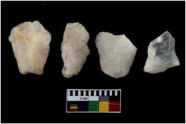 | Description / विवरण | There are n 4 flake cores. All of them are fully fluted flake cores without any trace of crested ridge flakes. Few are tapering at one end and some have flat base. |