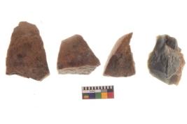 | Description / विवरण | There are n 4 utilized worked flakes; they show multidirectional irregular scar pattern on both dorsal and ventral face of the flakes.Two are tapering at one end and all are having sharp edges. |