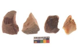 | Description / विवरण | There are n 4 utilized worked flakes; they show multidirectional irregular scar pattern on both dorsal and ventral face of the flakes.Three are tapering at one end and all are having sharp edges. |