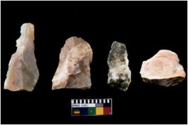 | Description / विवरण | There are n 4 of utilized worked cores.They show multidirectional irregular scar pattern. Two are tapering on one end and have flat base. |
