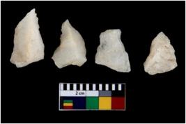 | Description / विवरण | There are n 4 flake cores. All of them are fully fluted flake cores without any trace of crested ridge flakes. They have sharp edges and some have flat base. |
