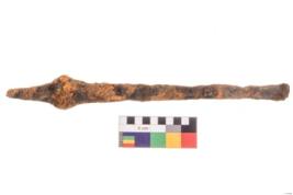 | Description / विवरण | Fragment of an iron spike head; it is highly corroded. |