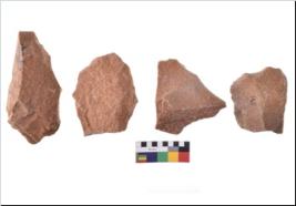 | Description / विवरण | There are n 4 of utilized worked cores.There are multidirectional irregular dominant scar pattern on both dorsal and ventral face of the flakes. |