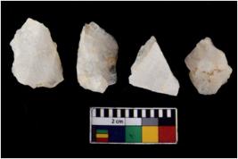 | Description / विवरण | There are n 4 flake cores. All of them are fully fluted flake cores without any trace of crested ridge flakes. Some are tapering at one end and some have round edges. |