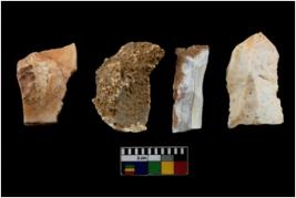 | Description / विवरण | There are n 4 of utilized worked cores. They show multidirectional irregular dominant scar pattern. One of them is tapering at one end. |