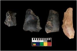 | Description / विवरण | There are n 4 of utilized worked cores. They show multidirectional irregular dominant scar pattern. One of them is tapering at one end. All are having sharp edges. |