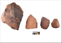 | Description / विवरण | There are n 4 of utilized worked cores.There are multidirectional irregular dominant scar pattern on both dorsal and ventral face of the flakes. They have sharp edges. |
