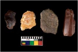| Description / विवरण | There are n 4 of utilized worked cores; two are of chalcedony and two of chert. They show multidirectional irregular dominant scar pattern. One of them is tapering at one end. |