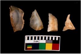 | Description / विवरण | There are n 4 of utilized worked cores. They show multidirectional irregular scar pattern and are tapering on one end. |