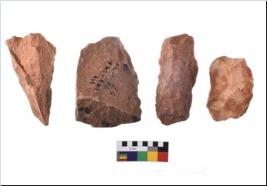 | Description / विवरण | There are n 4 of utilized worked cores.There are multidirectional irregular dominant scar pattern on both dorsal and ventral face of the flakes.Some are tapering at one end. |