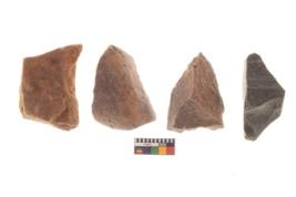 | Description / विवरण | There are n 4 utilized worked flakes; they show multidirectional irregular scar pattern on both dorsal and ventral face of the flakes.Three are tapering at one end and all are having sharp edges. |