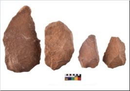 | Description / विवरण | There are n 4 of utilized worked cores. Some are tapering at one end. They have sharp edges with dominant scar pattern. |
