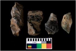 | Description / विवरण | There are n 4 of utilized worked cores. They show multidirectional irregular scar pattern. Three are tapering on one end and have sharp edges. Intact |