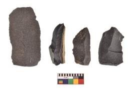 | Description / विवरण | There are n 4 utilized flake cores. There are multidirectional irregular scar pattern on both dorsal and ventral face of the flake cores. One is tapering at one end and three have sharp edges. |