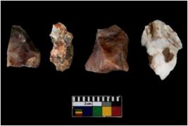 | Description / विवरण | There are n 4 of utilized worked cores. They show multidirectional irregular dominant scar pattern. One of them is tapering on one end. |