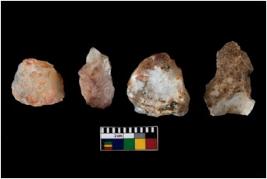 | Description / विवरण | There are n 4 of utilized worked cores. They show multidirectional irregular dominant scar pattern. Two of them is tapering on one end. |