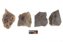 | Description / विवरण | There are n 4 utilized worked flakes; they show multidirectional irregular scar pattern on both dorsal and ventral face of the flakes.Two are tapering at one end and all are having sharp edges. |