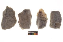 | Description / विवरण | There are n 4 utilized worked flakes; they show multidirectional irregular scar pattern on both dorsal and ventral face of the flakes.Two are tapering at one end and all are having sharp edges. |