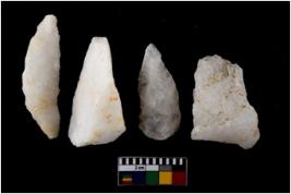 | Description / विवरण | There are n 4 flake cores. All of them are fully fluted flake cores without any trace of crested ridge flakes. Some of them have flat base and few have sharp edges. |