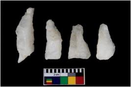| Description / विवरण | There are n 4 flake cores. All of them are fully fluted flake cores without any trace of crested ridge flakes. All are tapering at one end; three of them have flat base. |