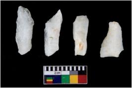 | Description / विवरण | There are n 4 flake cores. All of them are fully fluted flake cores without any trace of crested ridge flakes. Two of them have flat base; all have sharp edges. |