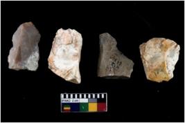 | Description / विवरण | There are n 4 of utilized worked cores.They show multidirectional irregular scar pattern. Two are tapering on one end. |