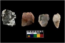 | Description / विवरण | There are n 4 of utilized worked cores.They show multidirectional irregular scar pattern. One is tapering on one end. |