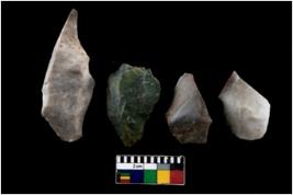 | Description / विवरण | There are n 4 of utilized worked cores.They show multidirectional irregular scar pattern. Three are tapering on one end and have sharp edges. |