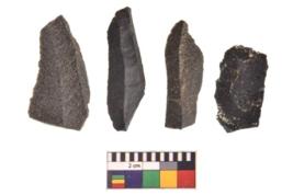 | Description / विवरण | There are n 4 utilized flake cores. There are multidirectional irregular scar pattern on both dorsal and ventral face of the flake cores. Two are tapering at one end and two have sharp edges. |