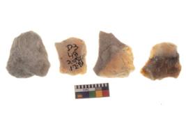 | Description / विवरण | There are n 4 utilized worked flakes; they show multidirectional irregular scar pattern on both dorsal and ventral face of the flakes.One is tapering at one end and all are having sharp edges. |