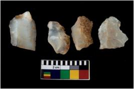 | Description / विवरण | There are n 4 of utilized worked cores. They show multidirectional irregular scar pattern and are tapering on one end. |