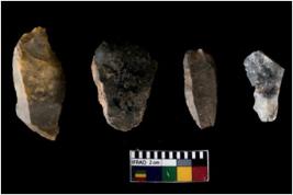 | Description / विवरण | There are n 4 of utilized worked cores.They show multidirectional irregular scar pattern. Three are tapering on one end. |
