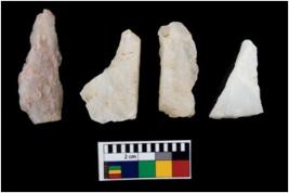 | Description / विवरण | There are n 4 flake cores. All of them are fully fluted flake cores without any trace of crested ridge flakes. Three of them are tapering at one end and all have flat base. |