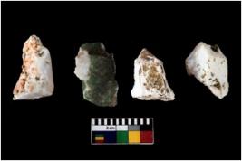 | Description / विवरण | There are n 4 of utilized worked cores.They show multidirectional irregular scar pattern. Two are tapering on one end. |