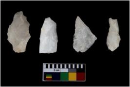 | Description / विवरण | There are n 4 flake cores. All of them are fully fluted flake cores without any trace of crested ridge flakes. All have sharp edges; two have flat base. |
