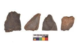 | Description / विवरण | There are n 4 utilized flake cores. There are multidirectional irregular scar pattern on both dorsal and ventral face of the flake cores. Two have flat base and two have blunted edges. |