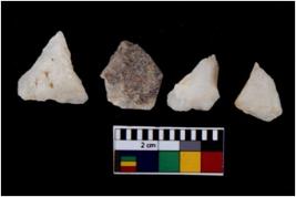 | Description / विवरण | There are n 4 flake cores. All of them are fully fluted flake cores without any trace of crested ridge flakes. Some are tapering at one end and some have round edges. |