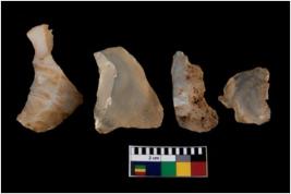 | Description / विवरण | There are n 4 of utilized worked cores. They show multidirectional irregular scar pattern. Two are tapering on one end and one has a broken tip. |