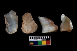 | Description / विवरण | There are n 4 of utilized worked cores. They show multidirectional irregular scar pattern. Two have flat base. |