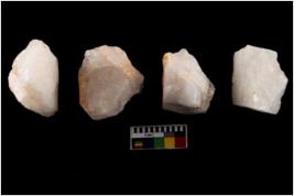| Description / विवरण | There are n 4 worked utilised cores; among them all are having ridges made out of removing blades. Two of them are having flat base. One shows impurities. |