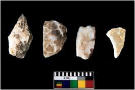 | Description / विवरण | There are n 4 of utilized worked cores. They show multidirectional irregular scar pattern. One is tapering on one end. |