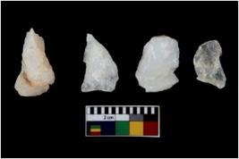 | Description / विवरण | There are n 4 flake cores. All of them are fully fluted flake cores without any trace of crested ridge flakes. Two are tapering at one end; and three have flat base. All have sharp edges. |