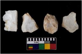 | Description / विवरण | There are n 4 flake cores. All of them are fully fluted flake cores without any trace of crested ridge flakes. Some are tapering at one end and some have round edges. |