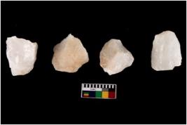 | Description / विवरण | There are n 4 worked utilised cores; among them all are having ridges made out of removing blades. One of them is pointed whereas two of them shows impurities. |
