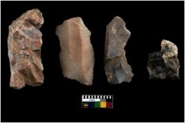 | Description / विवरण | There are n 4 of utilized worked cores. They show multidirectional irregular dominant scar pattern. One of them is tapering at one end. Three of them have sharp edges. |