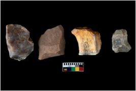 | Description / विवरण | There are n 4 of utilized worked cores. They show multidirectional irregular dominant scar pattern. One of them is tapering at one end. Three of them are having sharp edges. |