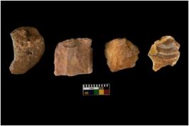 | Description / विवरण | There are n 4 of utilized worked cores. They show multidirectional irregular dominant scar pattern. Three of them have blunt edges. |