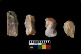 | Description / विवरण | There are n 4 of utilized worked cores. They show multidirectional irregular scar pattern. Three are tapering on one end and three have flat base. |