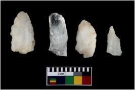 | Description / विवरण | There are n 4 flake cores. All of them are fully fluted flake cores without any trace of crested ridge flakes. They are tapering at one end. Some have flat base and few have round edges. |