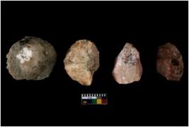 | Description / विवरण | There are n 4 of utilized worked cores. They show multidirectional irregular dominant scar pattern. One of them is tapering at one end. All have blunt edges. |